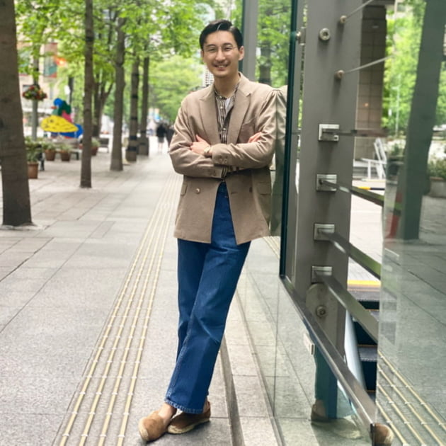 柔らかで優しげながら、メインのシャツジャケットの色気で勝負!