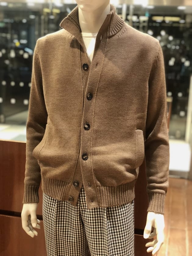 普段ジャケットやアウターのサイズ48を着ている彼で、ハイゲージニットの上からサイズ3を着用。