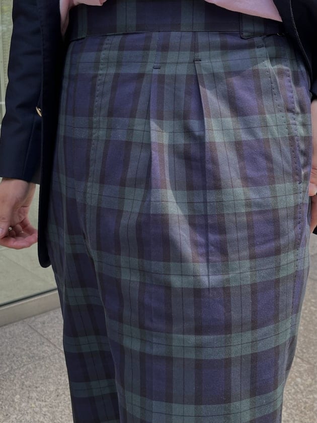 定番の『FAI』はベーシックに着られます。後ろのアクティブプリーツが、細身ながらも着心地良いです。