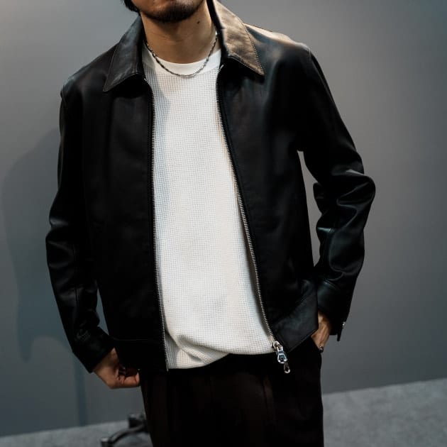 幅広いコーディネートに対応可能なシングルライダース。日本人体型に考慮して作られたコンパクトモデルです。
