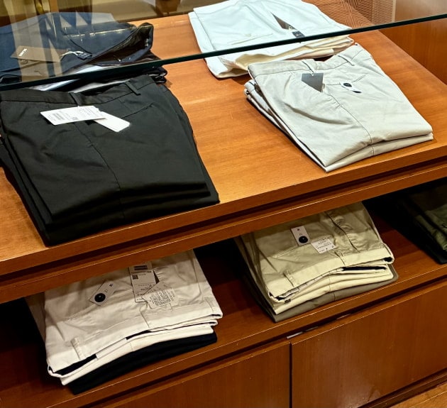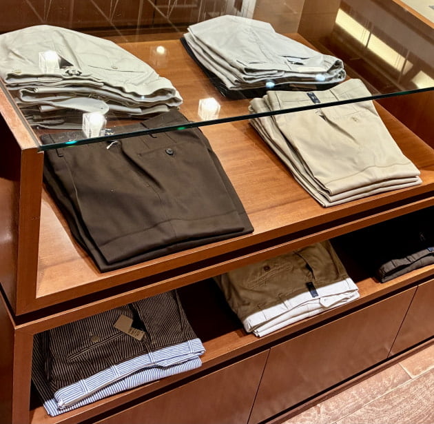 サイドアジャスターや、少しクラシックなディテールのパンツたち。