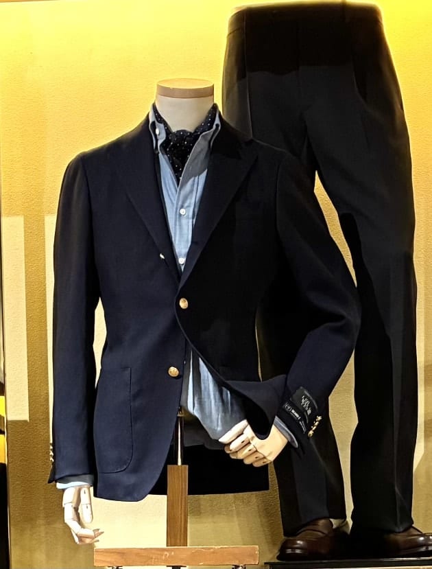 (同様に、スーツのフロントも1番下は、留めない。アンボタンマナーが始まり、留めないときが、1番美しく見えるようにテーラーは、仕立てをするようになる。)