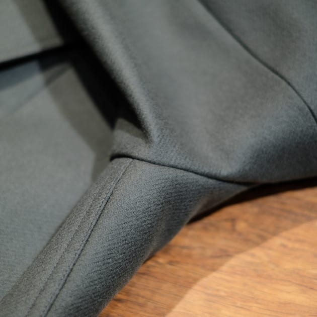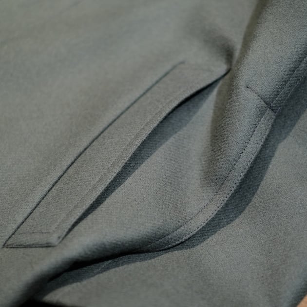 (サンプル品は袖丈が少し短いですが、製品版では3cmほど長く修正され、ターンナップする前提のバランスになるそうです。)