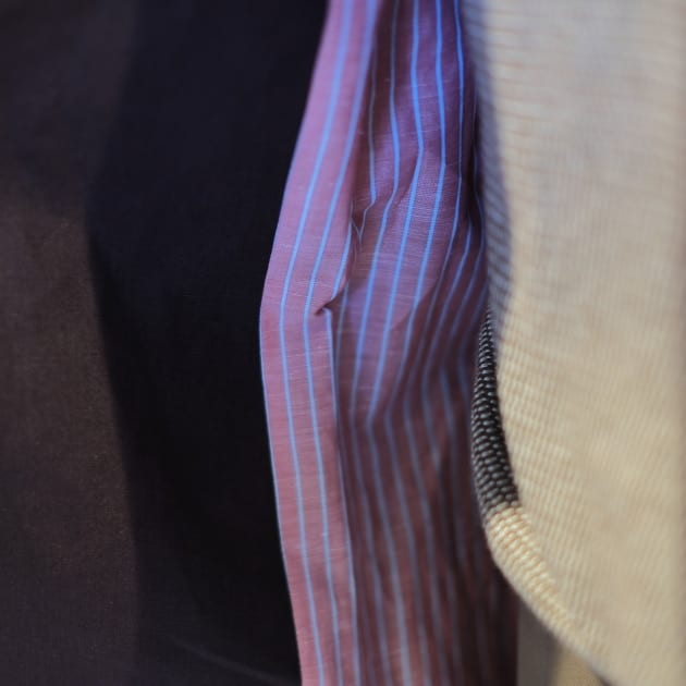 運よくバイヤー間瀬と話すことができて聞けたのですが、このモデルの裏地は所謂「裏地用」生地ではなく、なんと「シャツ生地」から選定しているそうです。これは<Chato Lufsen>がモチーフとしているオリジナルがそのようにしていたからだとか。なんというこだわり。