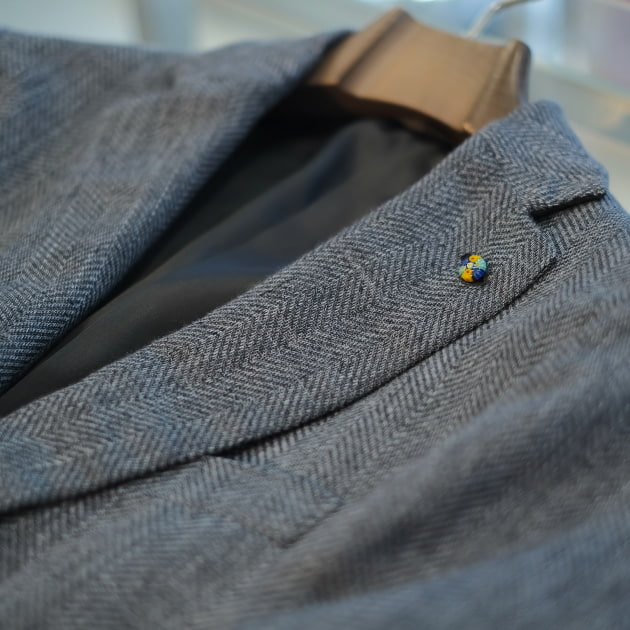 ボタンはクレイジーボタン仕様で、一部はイギリスから仕入れた本物のビンテージ。このボタンに関しては面白いエピソードを仕入れることができたので、また後日。