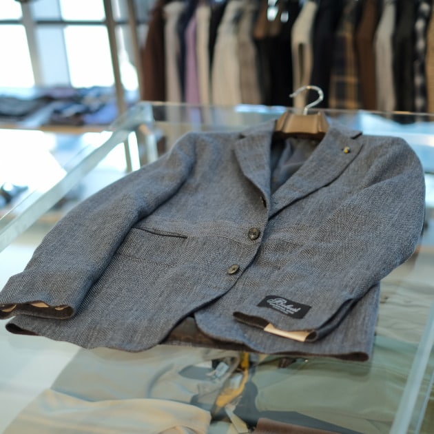 毎シーズン好評のフィレンツェモデルに<Joshua Ellis>のカシミアを載せています。サマーカシミアならではの独特のヌメリ、光沢、肌触り、最高です。触った感じは通年着用しても違和感なさそうでした(ヘビーユースはオススメしませんが)。