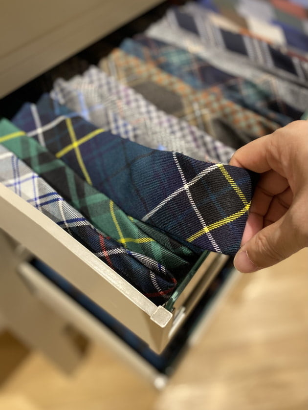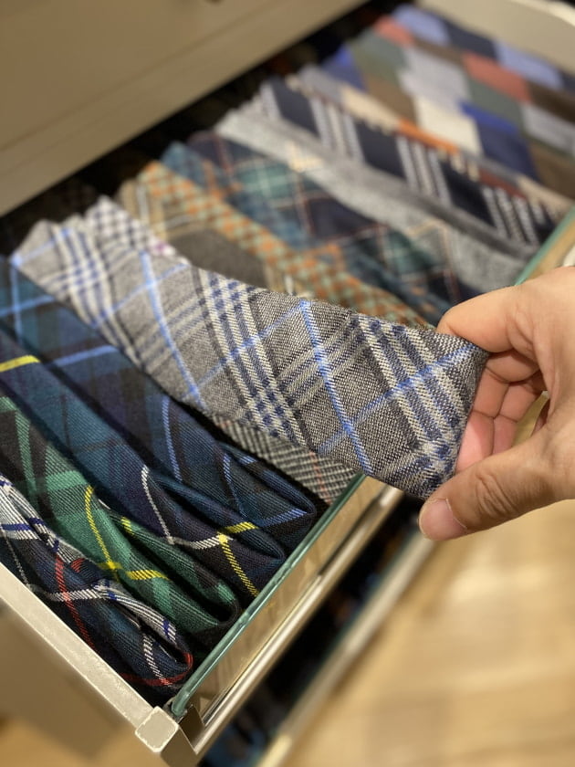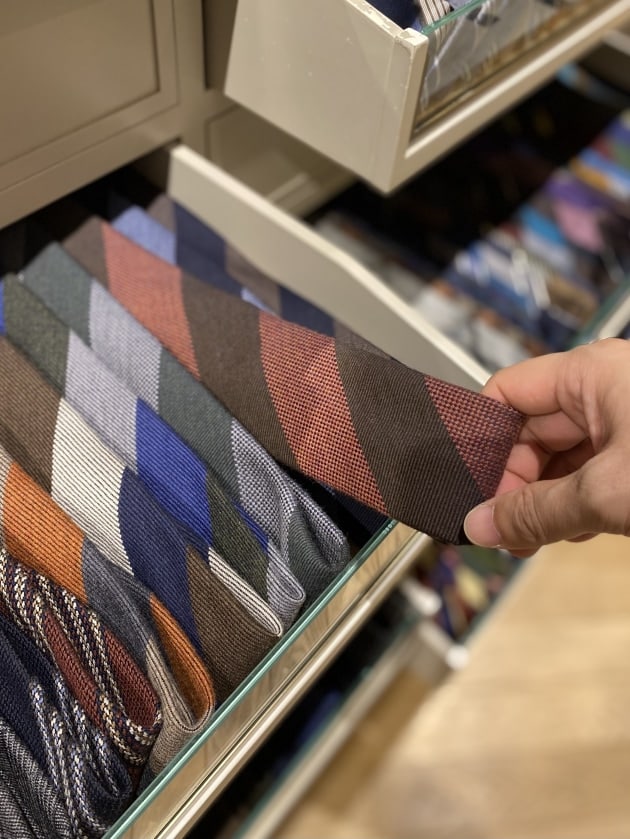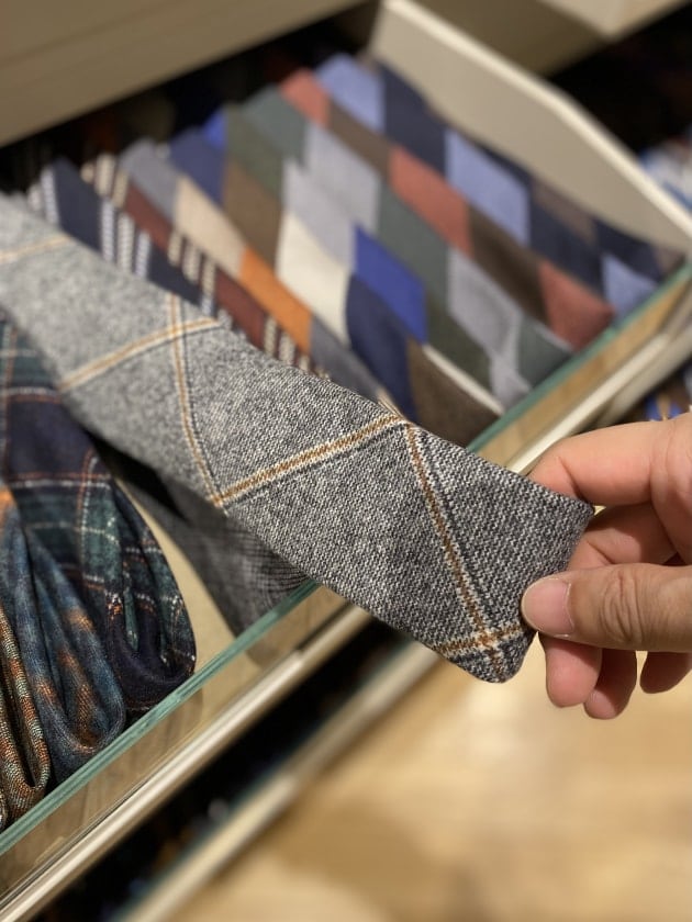 ツイードやフランネルのスーツが継続して人気の今季。マットな質感がマッチするウールタイは引き続き揃えたいところです。