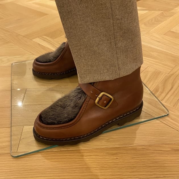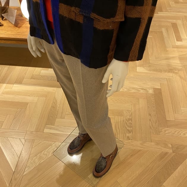 甲のウールファブリックとシングルモンクストラップのディテールがコーディネートと相性の良いバランスです!