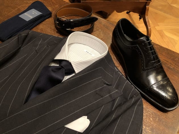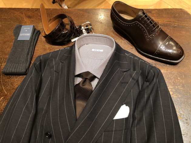 我々男性の味方であるネイビーのスーツは鉄板として、その延長線上にあるようなこちらのお色。