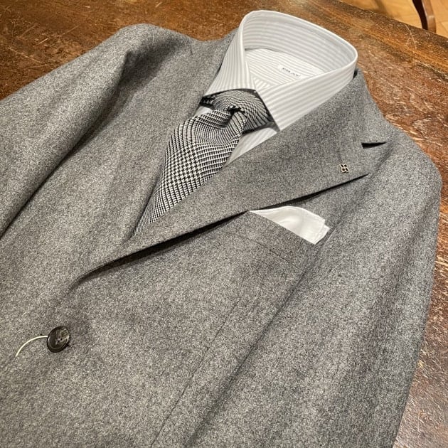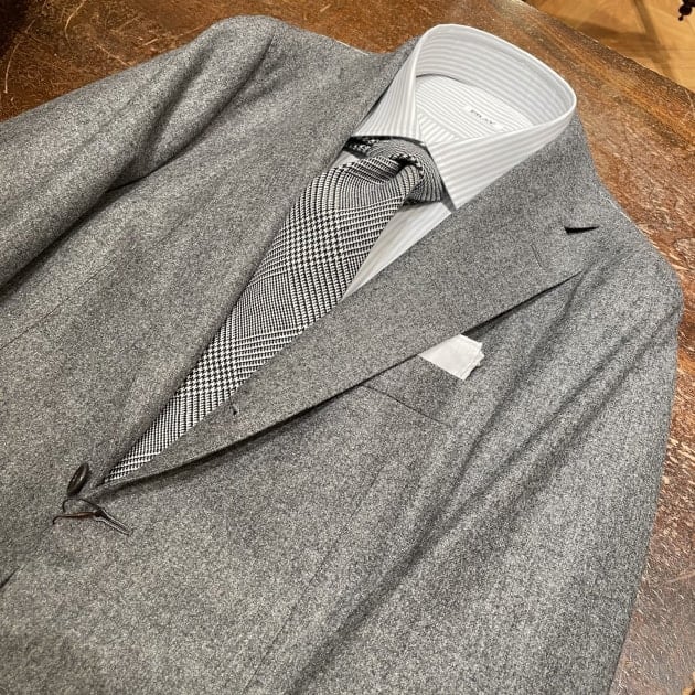 裏話と言いますかこのVゾーンに至った経緯を本寺に聞いたのですが、最初はイタリアンクラシックを意識してこの辺りのプリントタイを選ぼうとしたとのこと。