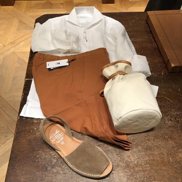 ショーツにグルカサンダルなんか合わせてサラッと着て頂いたり、