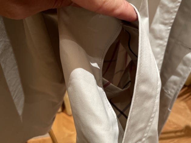 身長175cm、スーツのサイズ44のスタッフ池田が同商品のサイズ46をスーツの上から羽織ってみました。
