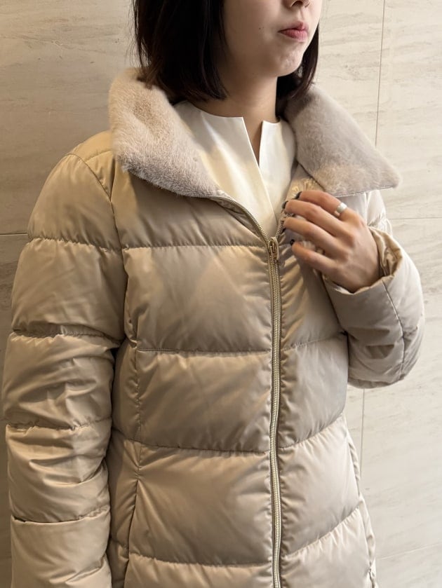 なかなかダウンとムートンのコンビはキレイに合わせるのが難しく、<EMMETI>ならではのアイテムです。