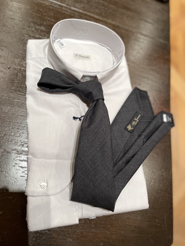 もちろん、他ブランドのネクタイでもビシッと合わせられます。