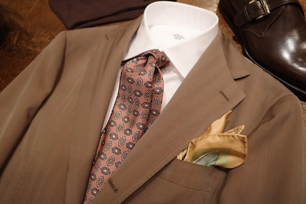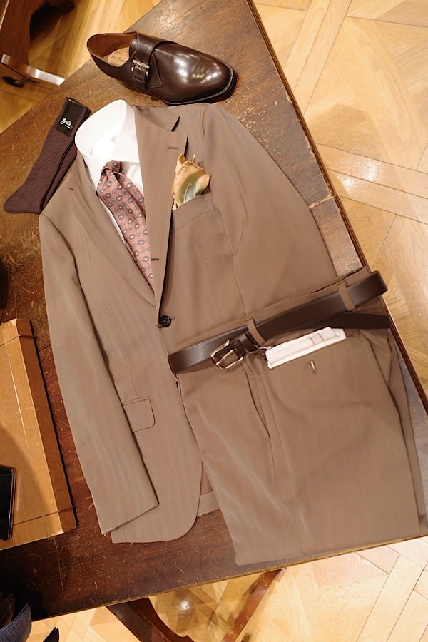 〈GRAN SASSO〉のニットは糸の太さが12Gなので、紡毛生地のジャケットにもしっかりマッチします。