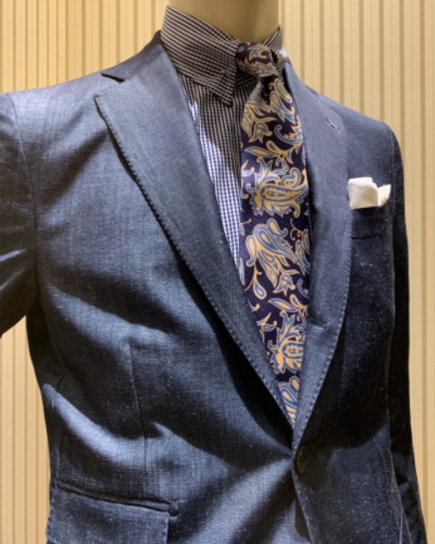 素直にビジネスシーンで着用されるネイビージャケットなどと合わせていただきたいと思います。