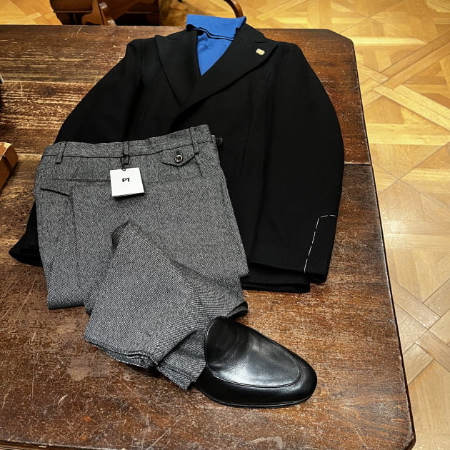 やっぱり合わせるパンツはホームスパンではなくシンプルにサキソニーが良いですね。