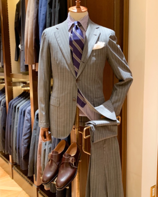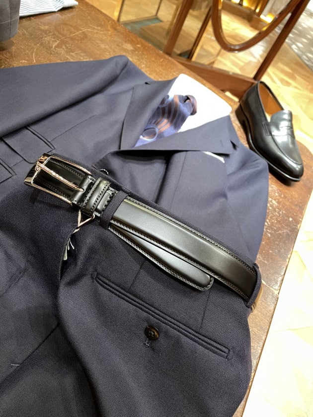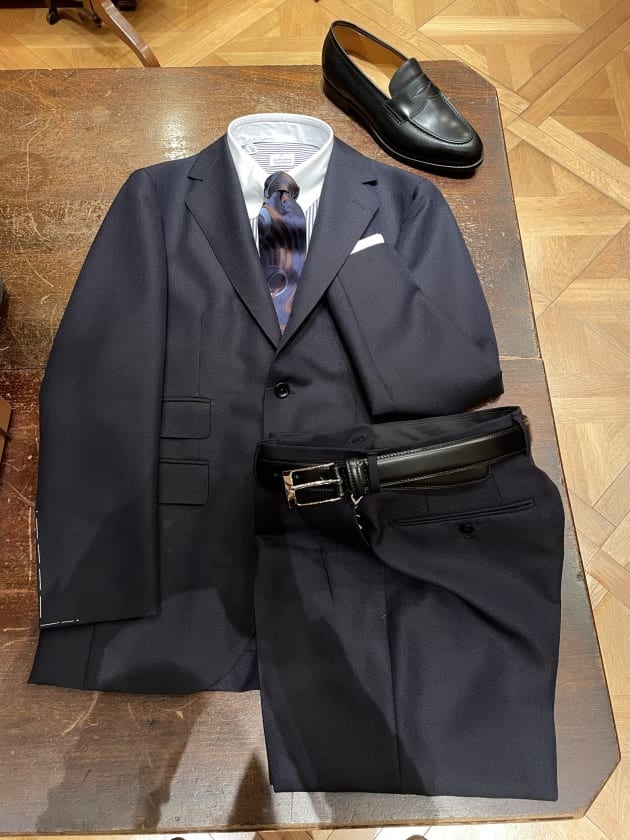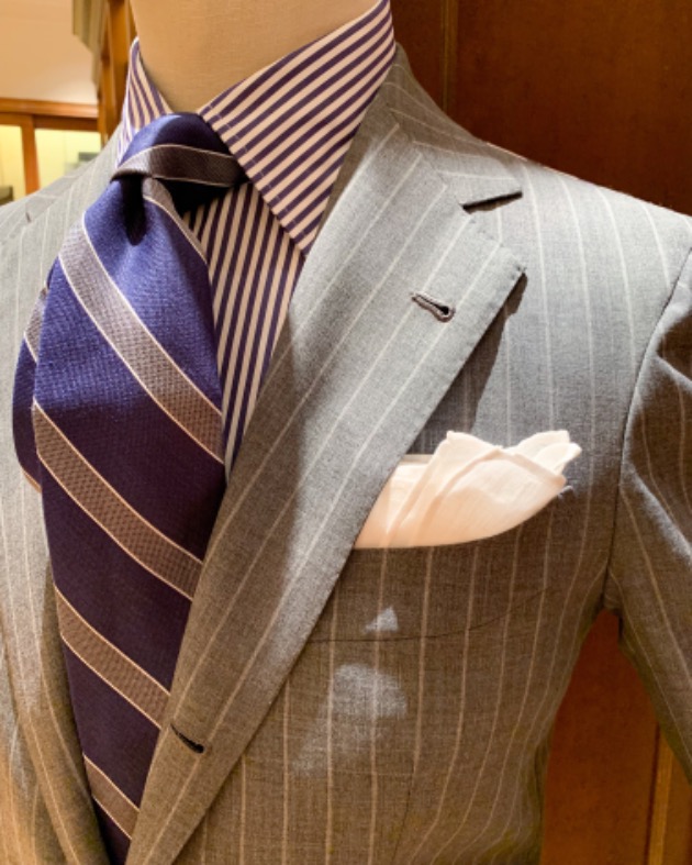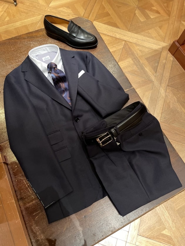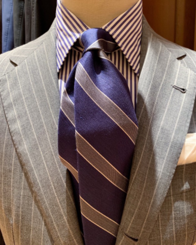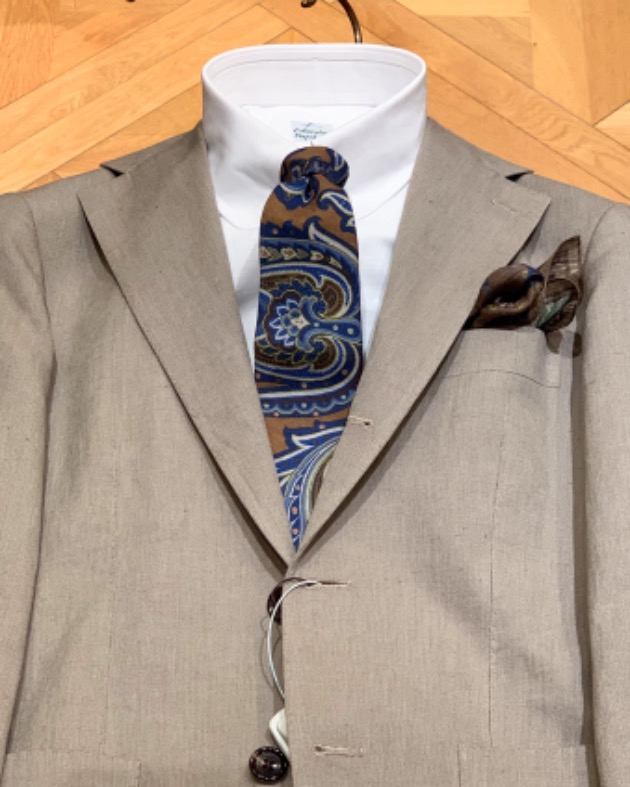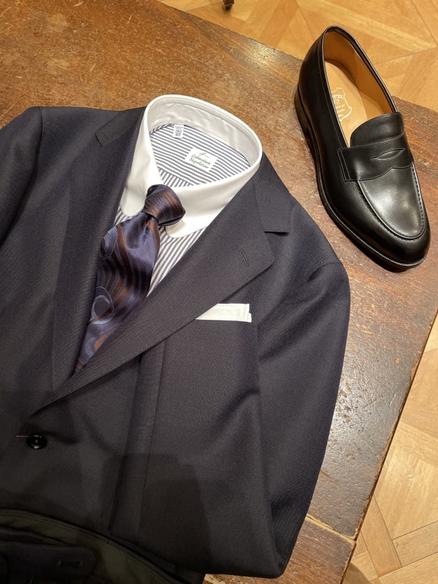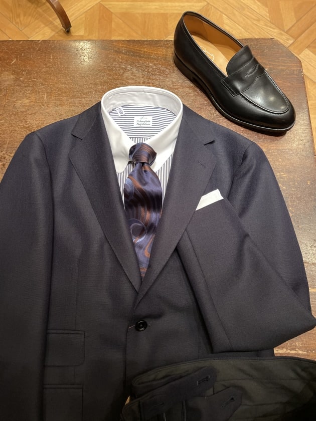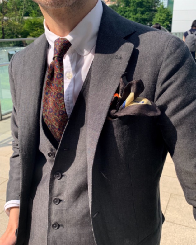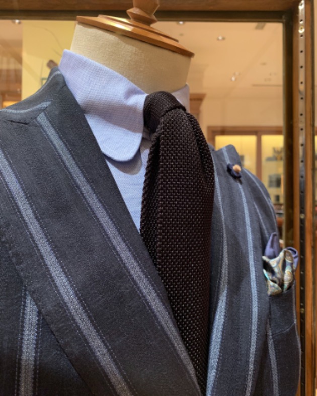 スーツでも、ジャケットパンツスタイルでも最近はソリッドタイが多めです。