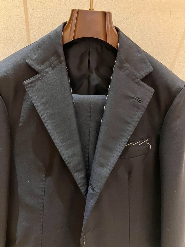 美しい光沢、抜群の耐久性、快適な着心地を兼ねた究極のネイビースーツと言っても過言ではない今回のオリジナルスーツ。