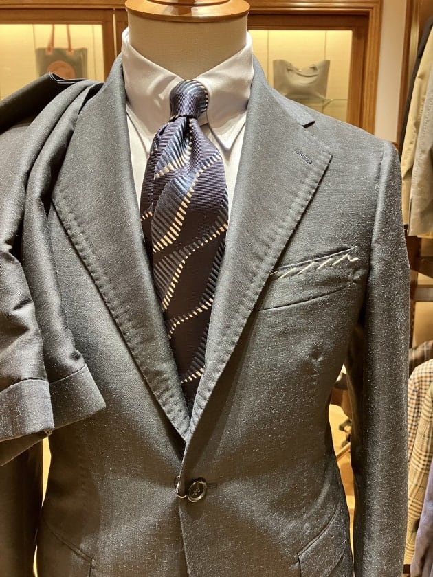 ウールとモヘヤをブレンドすることで、しなやかでありながらハリやコシが生まれシワになりにくく耐久性に優れ、更に美しい光沢があって高級感を醸し出す、そんな特徴を持ち合わせております。