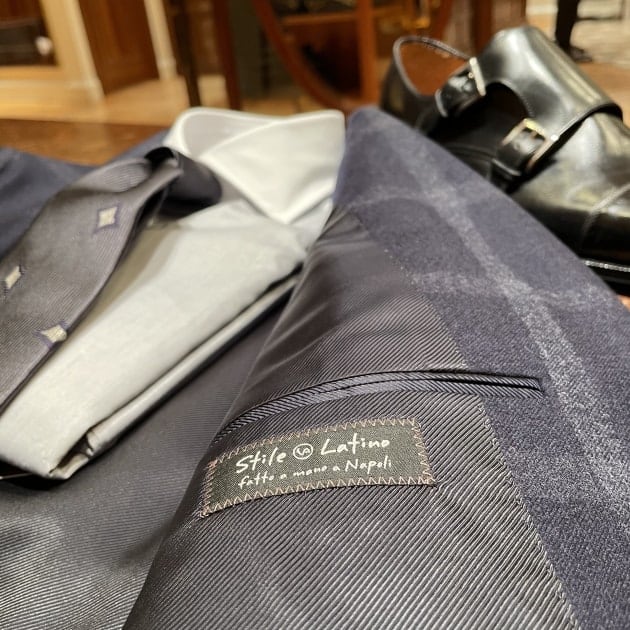 この一見派手なスーツをどう着るのがかっこよいか、今日は考えました。