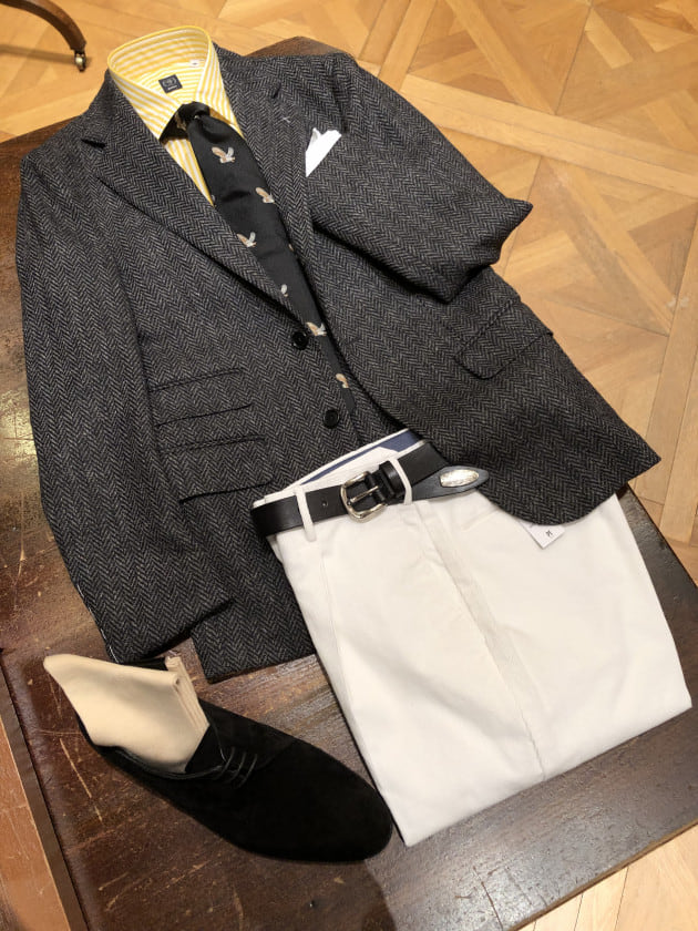 私は英国調のゴワっとした重厚感のある生地はどうも苦手で避けていたところもあるのですがこのジャケットの雰囲気は柔らかさもあるので興味がわきました。