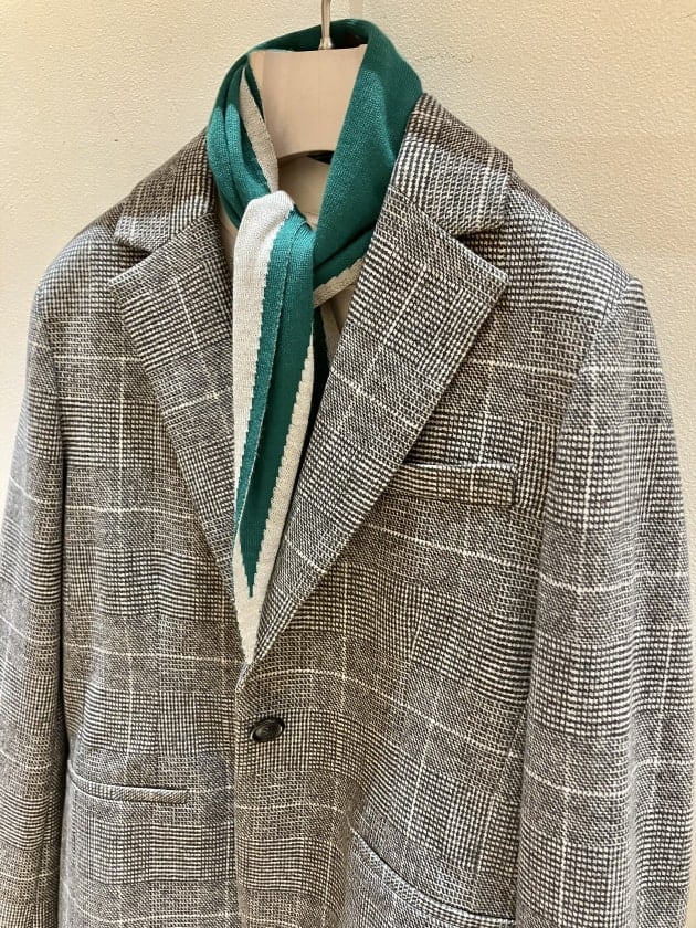 今回別注でご用意しているこちらのアイテムは、主張の強すぎないヘリンボーンのプリントが施されています。