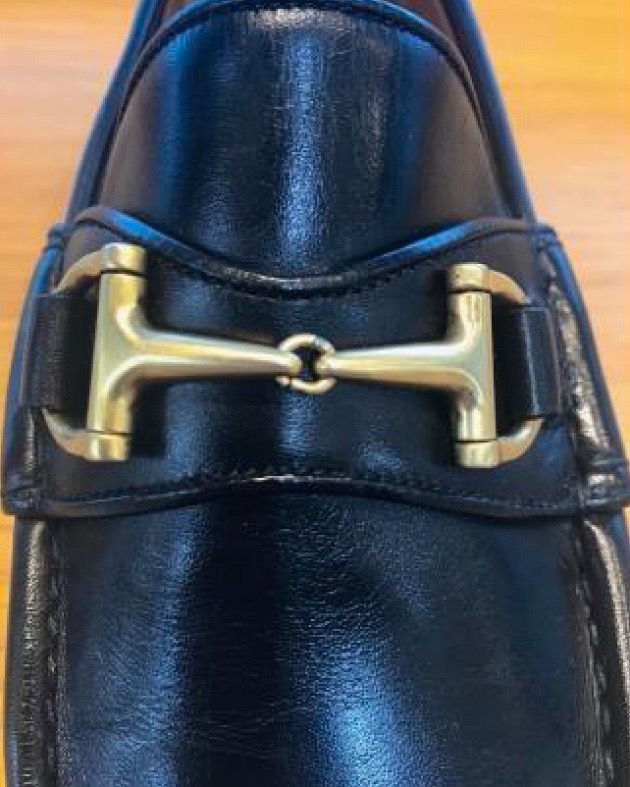 ブラックリネンスーツにブラックスエードのビットローファー。