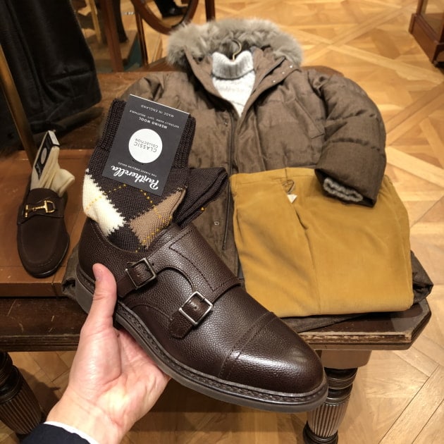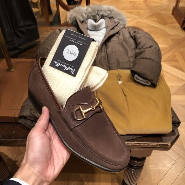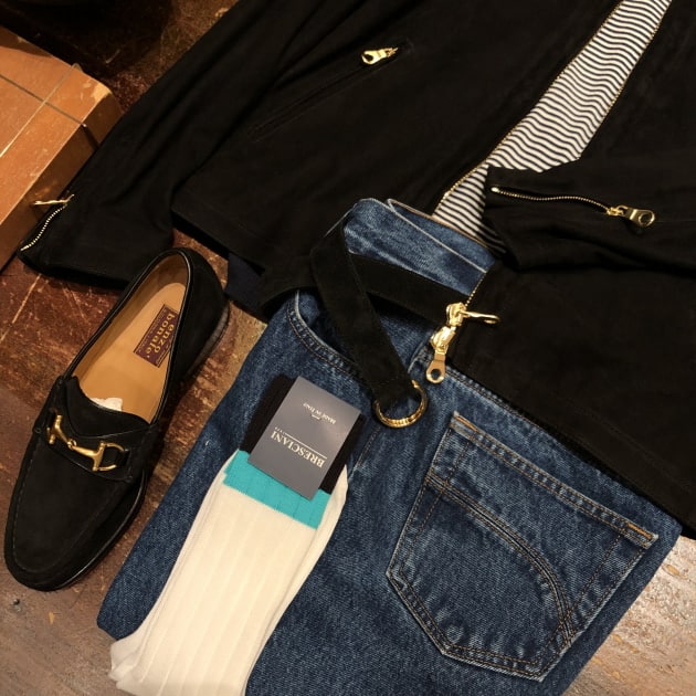 春が訪れ晴れた日は明るいブルーやネイビーに茶靴を合わせたくなりますね。