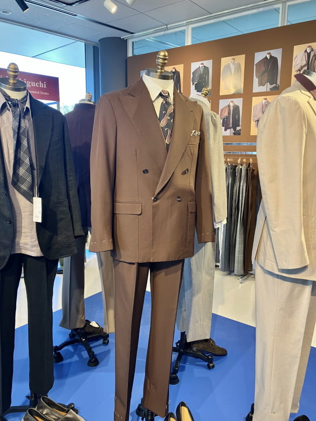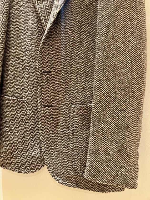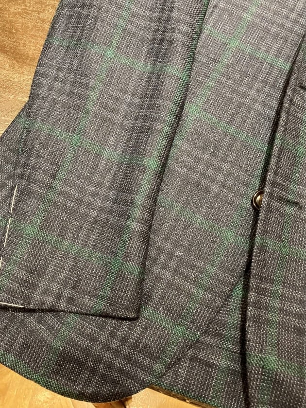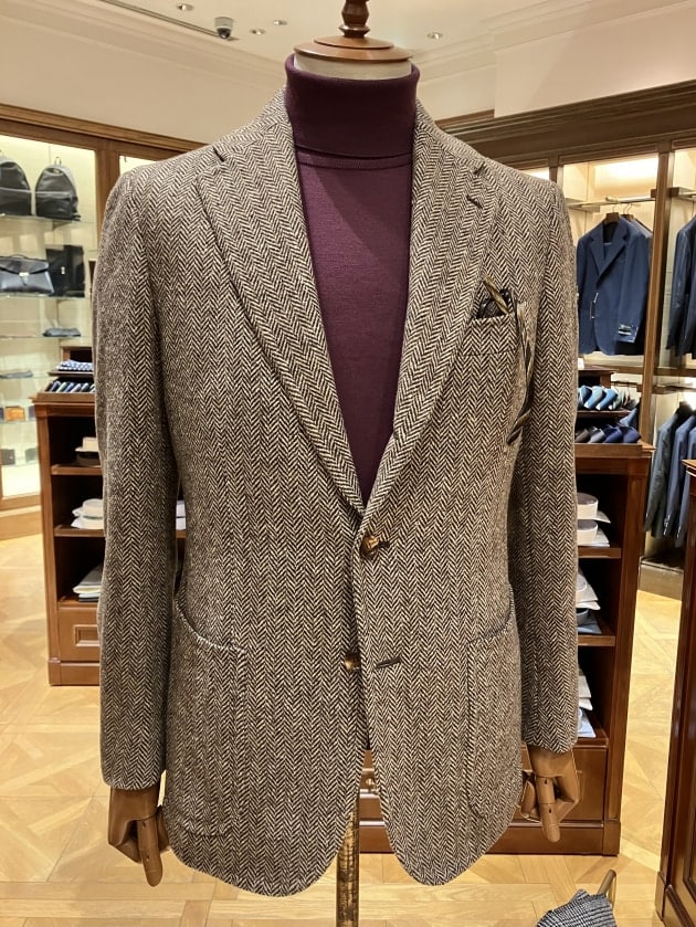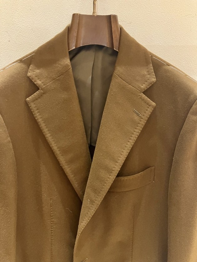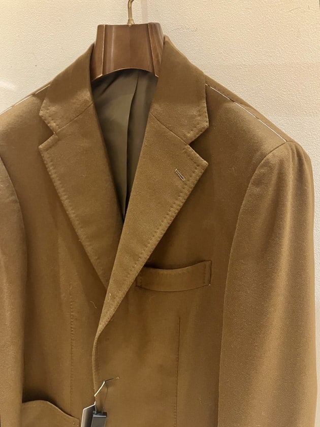 ワイドラペルが特徴的な【FAUSTO 3B】を採用。勿論ですがナポリ仕立て特有の体のラインに馴染むような立体感のあるシルエットから成る包みこむような抜群の着心地は健在です。