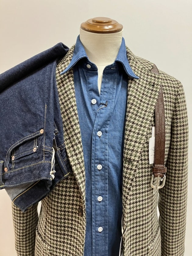 生地の印象からは上品なスタイルよりかな?とイメージをお持ちになるかもしれませんが綺麗目なカジュアルジャケットスタイルにも対応できるのが一番の良さかなと思います。