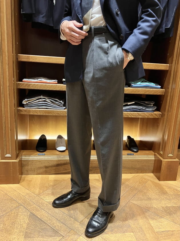 同ブランドの魅力は何かと申しますと、着こなしのアクセントにもなるワイドラペルに、ボディラインを絞った色気のあるシェイプで、イタリアブランドらしいグラマラスな表情でしょうか?