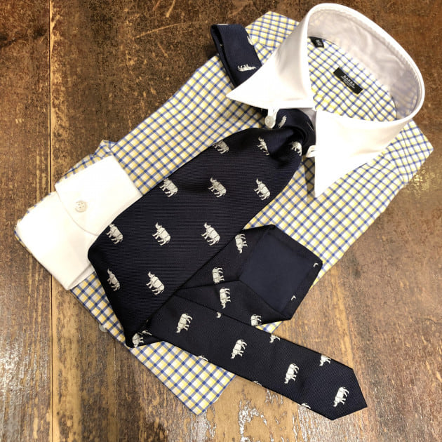 これと言って、「このシャツとタイじゃなければダメ。」という訳ではないのでお手持ちの物で何パターンもアレンジしていただけると思います。