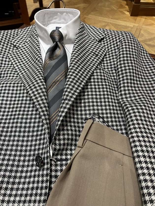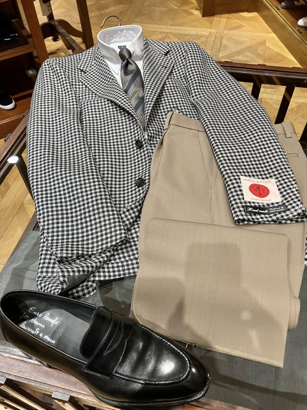 スーツの素材感をきちんと活かした合わせ、良いですねぇ。