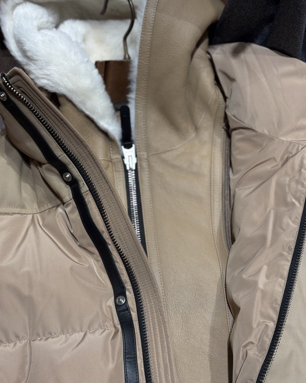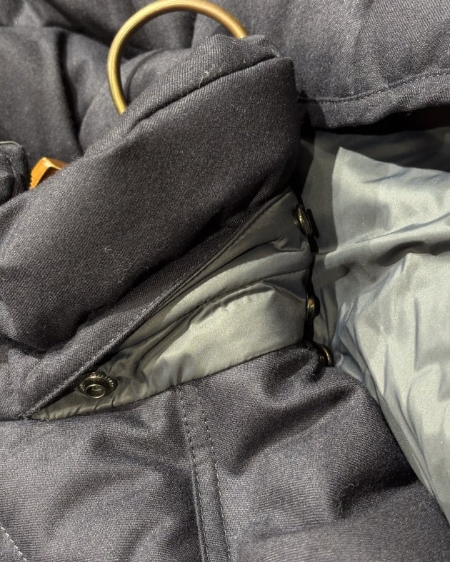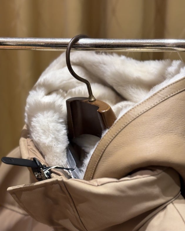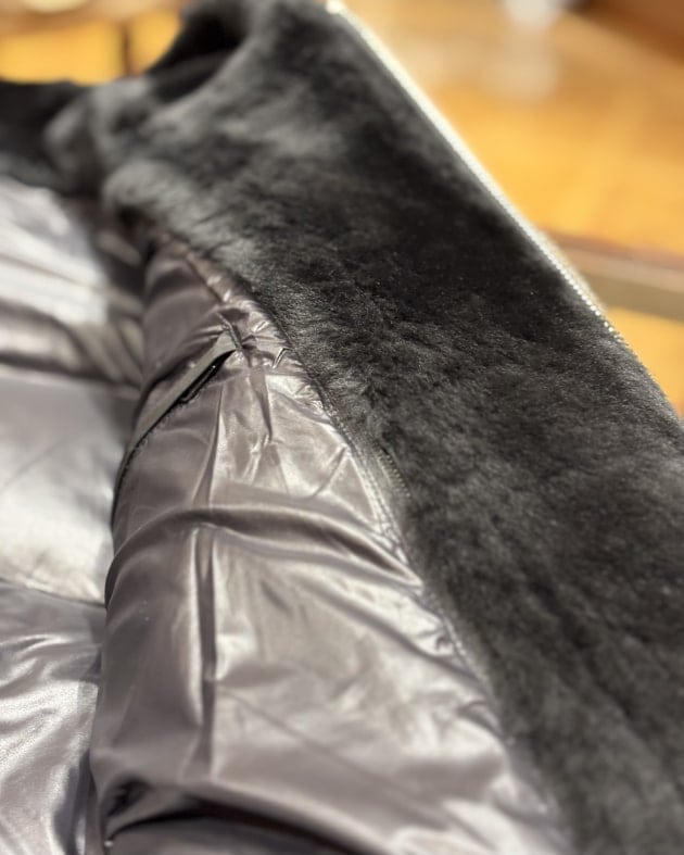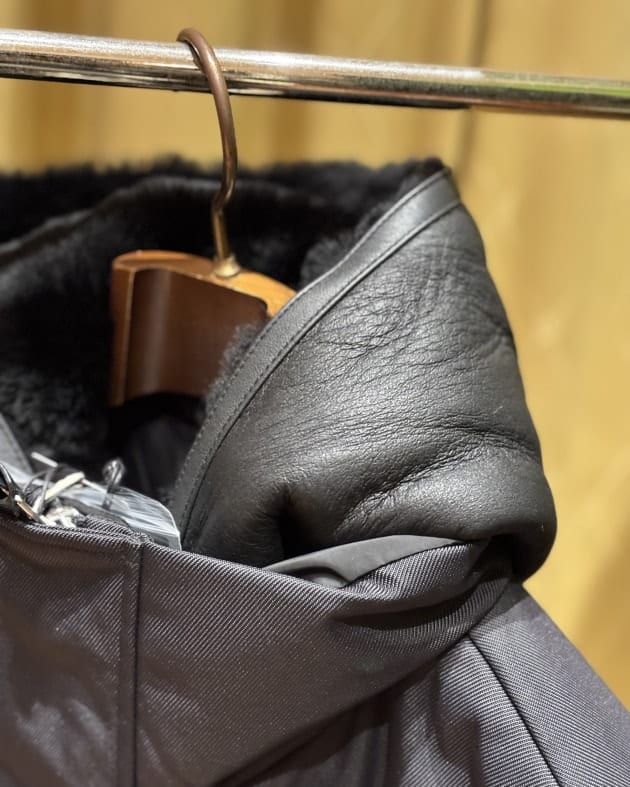 フロントジップを開くと、フードと一体となったムートンの前立てが登場します。