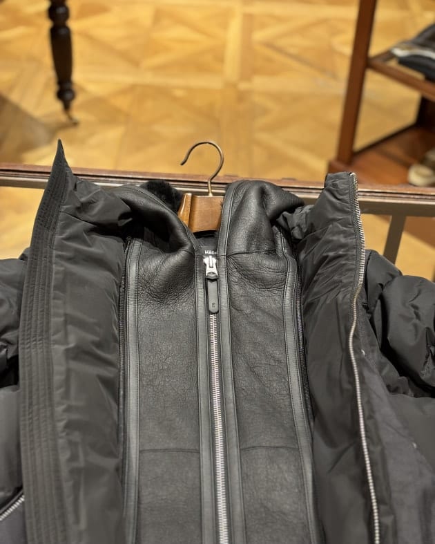 スナップを外していく過程にもリアルレザーを発見。至る所にレザーが用いられています。