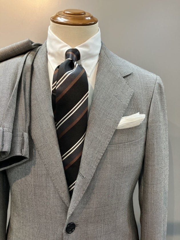 ベージュトーンのネクタイは柔らかい雰囲気が出てオススメです。