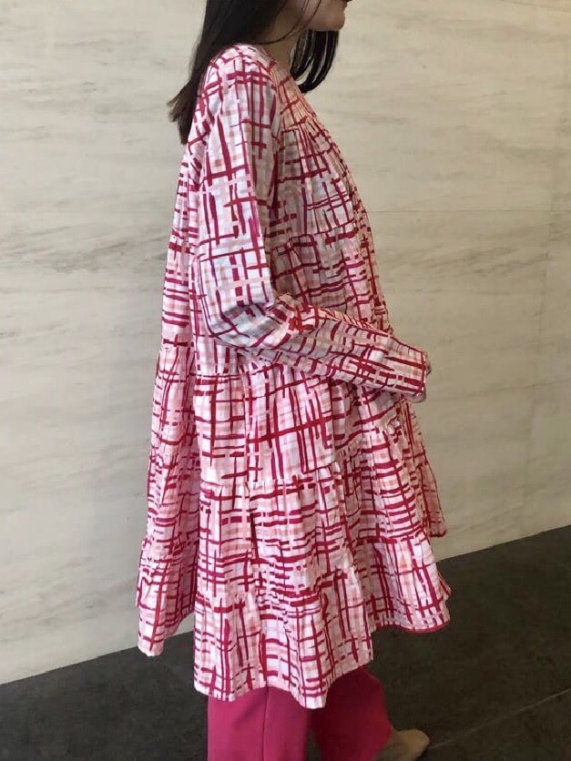広がり過ぎないすっきりしたAラインのシルエット。