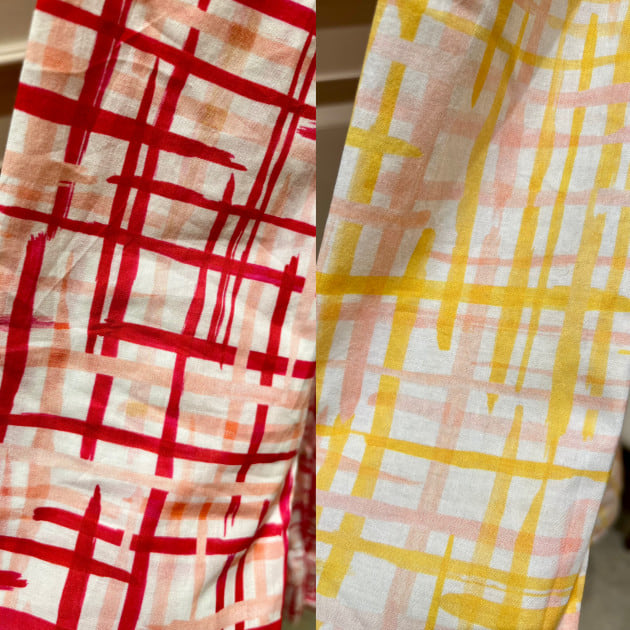 コットン100%、UV加工がされています。生地を紫外線から守ることで、白は黄ばみにくく、濃い色は日焼けによる色褪せを防いでくれる効果があります。