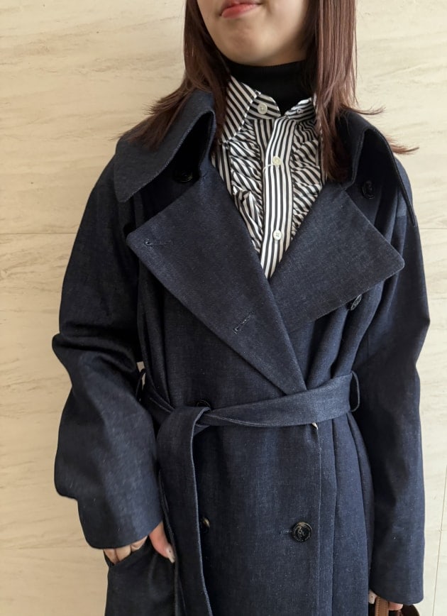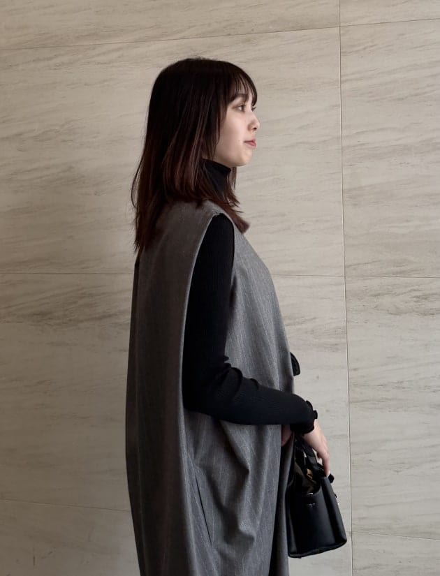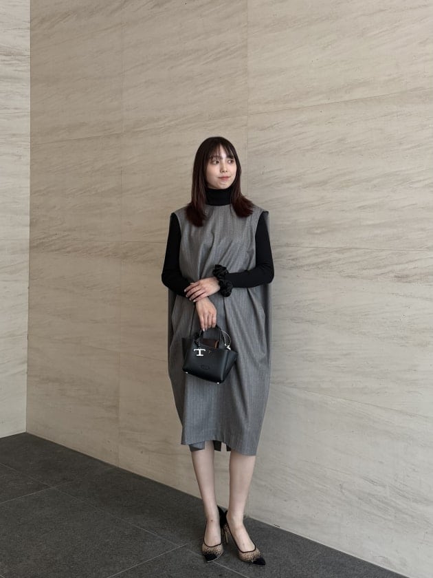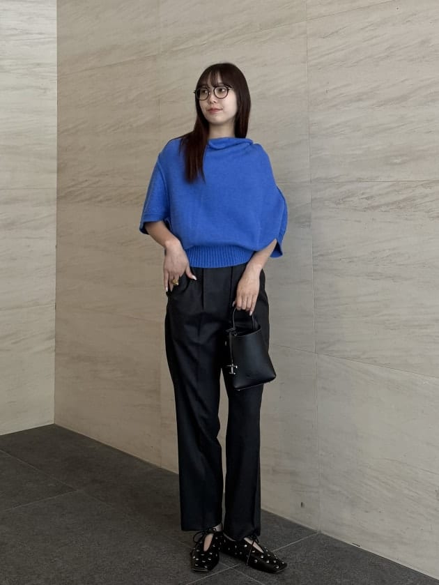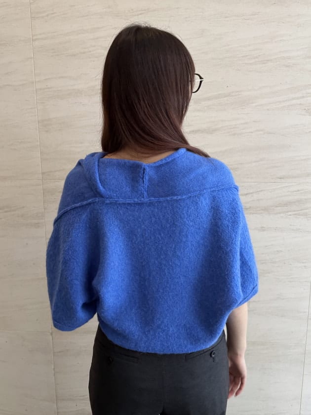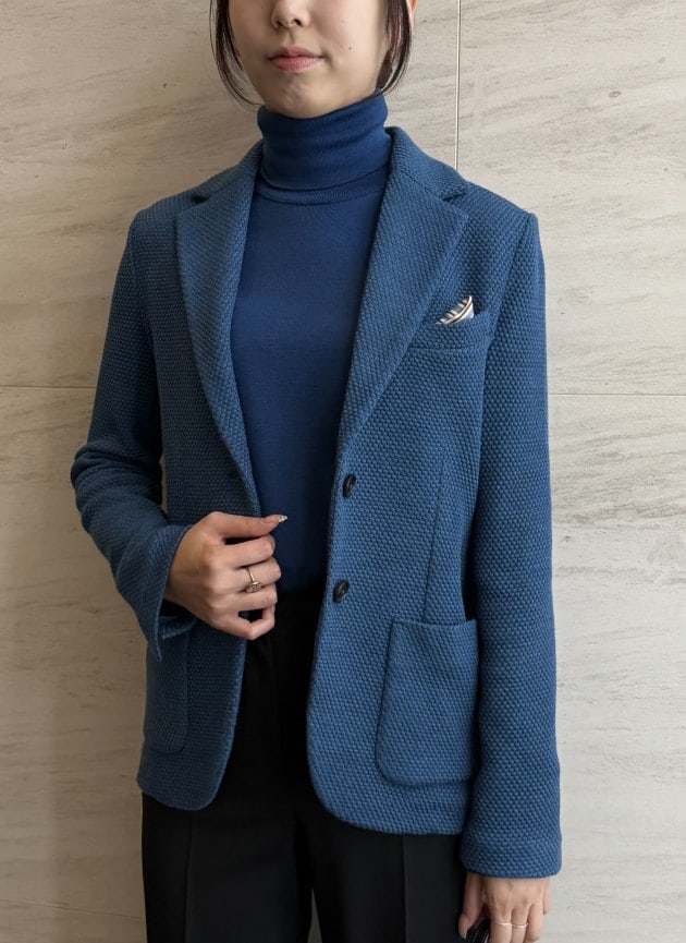 コンパクトなシルエット感ですが、生地にポコポコとした凹凸があり、体のラインを拾いづらい点、立体的な生地感がコーディネートに奥行きを与えてくれる点が人気な理由です。