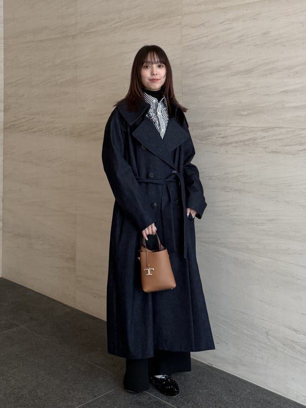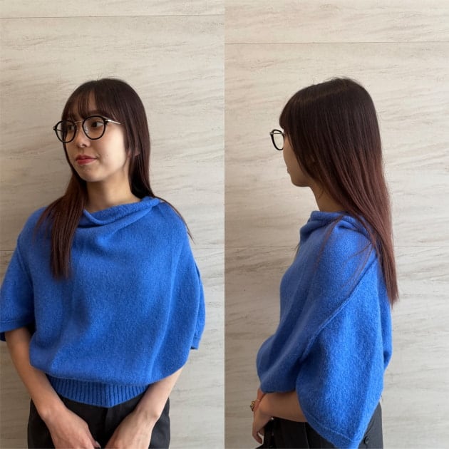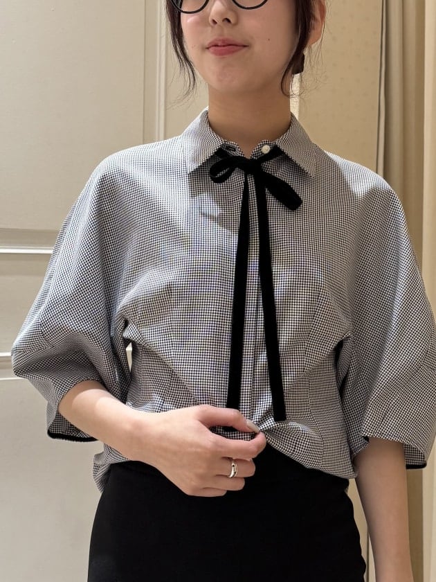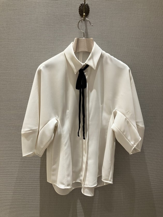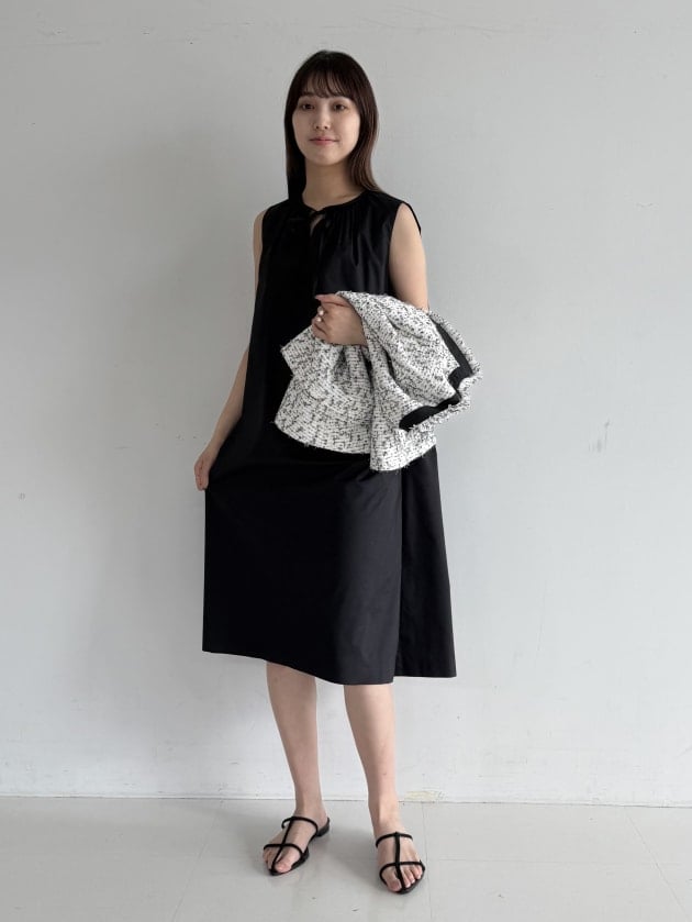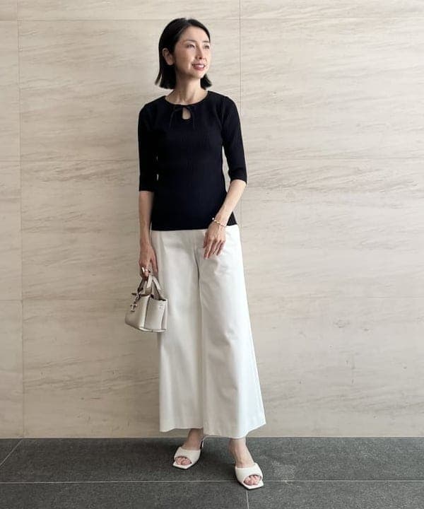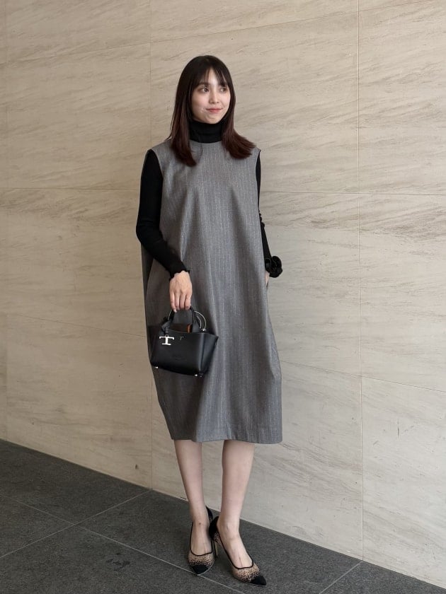 コンパクトなシルエット感ですが、生地にポコポコとした凹凸があり、体のラインを拾いづらい点、立体的な生地感がコーディネートに奥行きを与えてくれる点が人気な理由です。