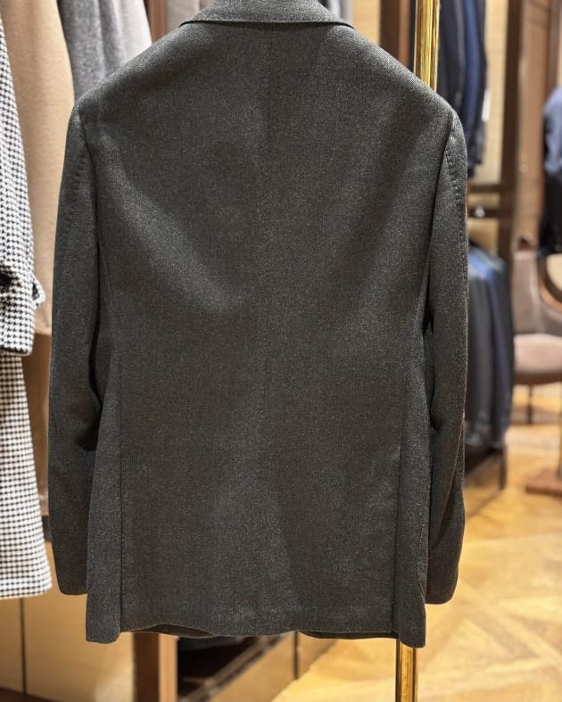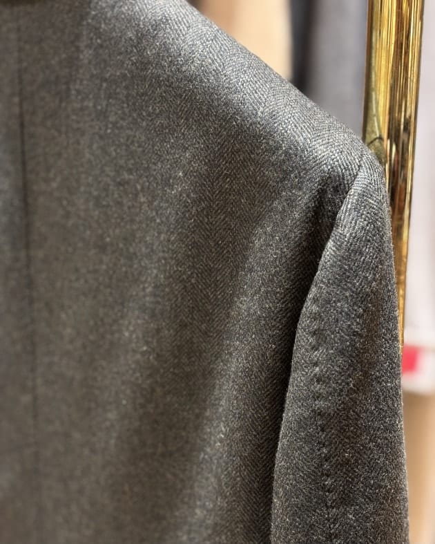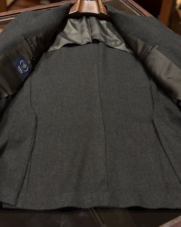 イージージャケットと言えど細かいところですが身ごろのボタンはしっかりとしたホーンボタンを使用していますので、どことなくエレガントな雰囲気です。
