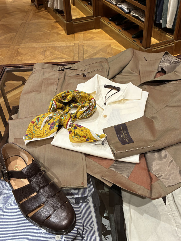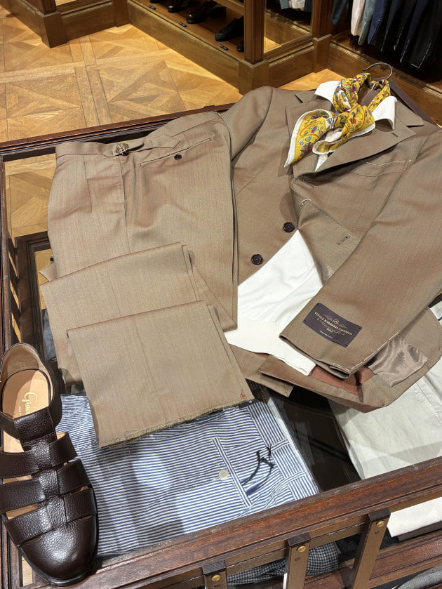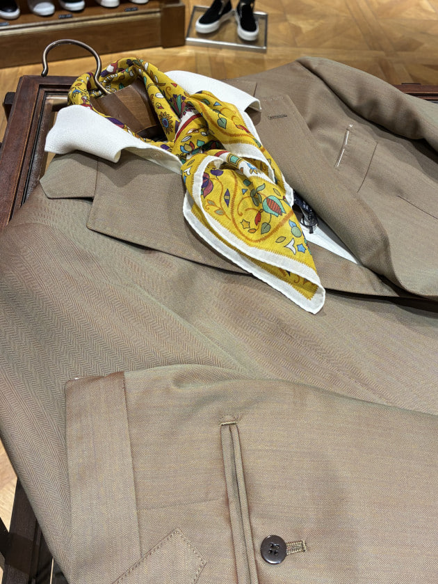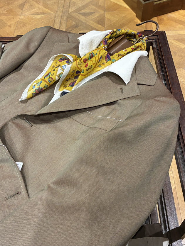裏地のないそれはまるでシャツのように軽く、先にも記入しましたが本当にサラッと羽織るのに「丁度いい」と感じさせます。