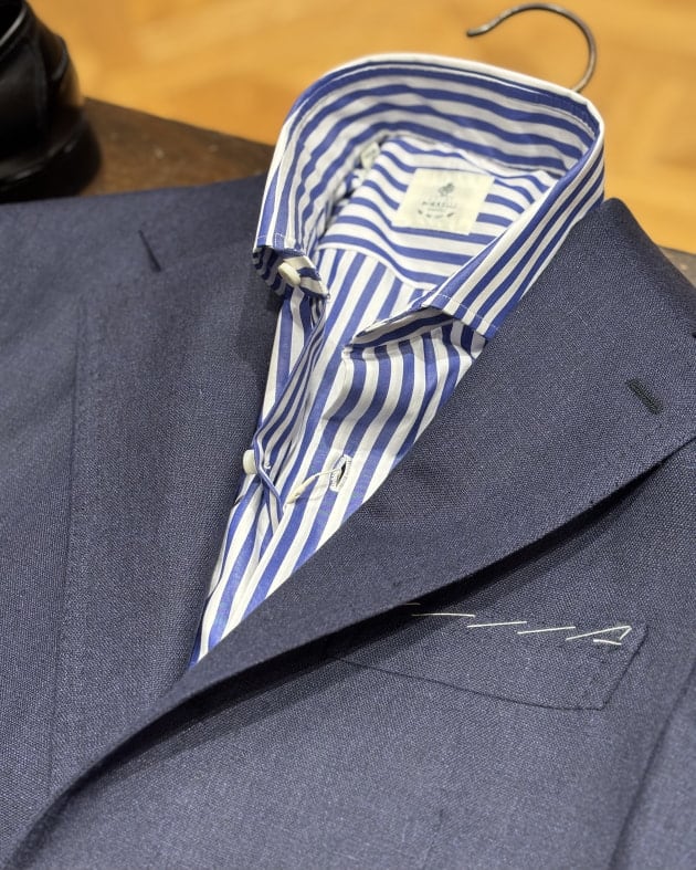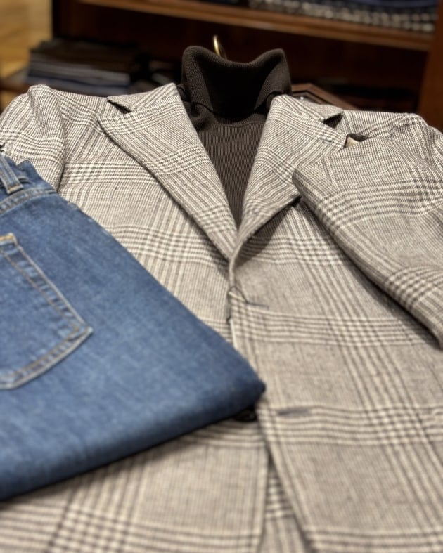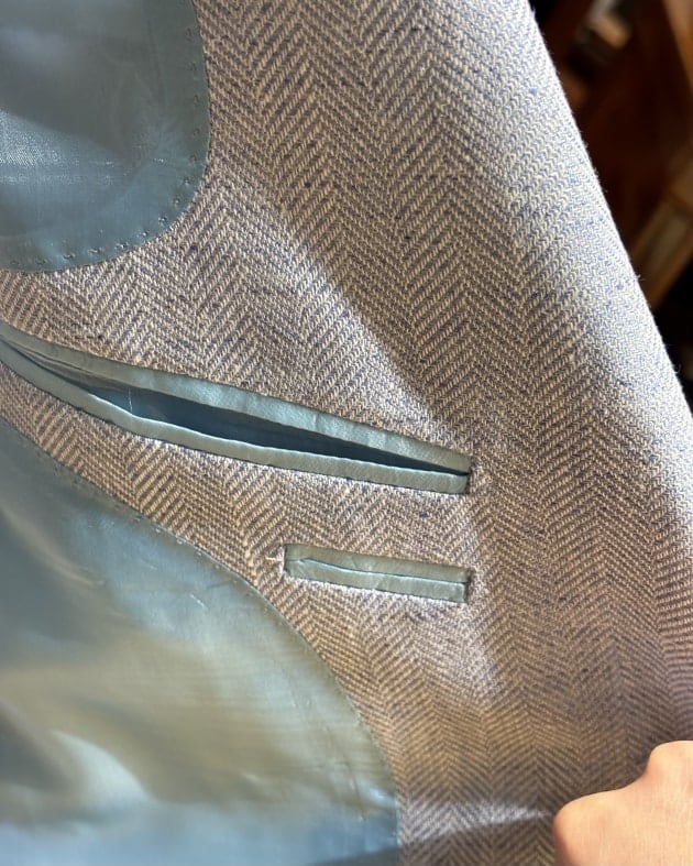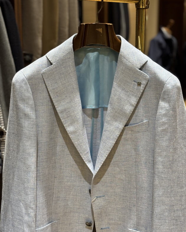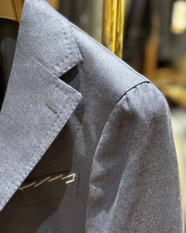 半裏で、ウェイトもやや軽め。通年使いが出来そうな生地です。(真夏はちょっと暑いかも)