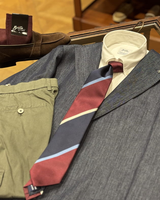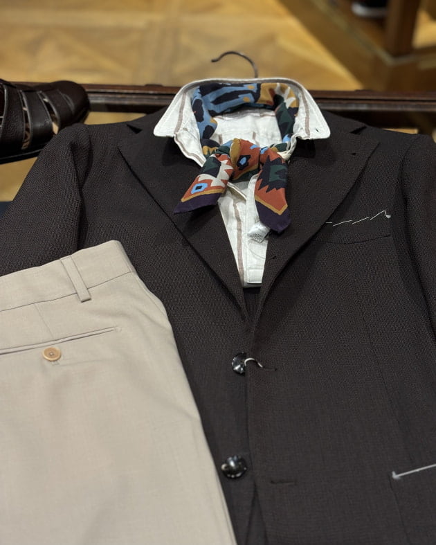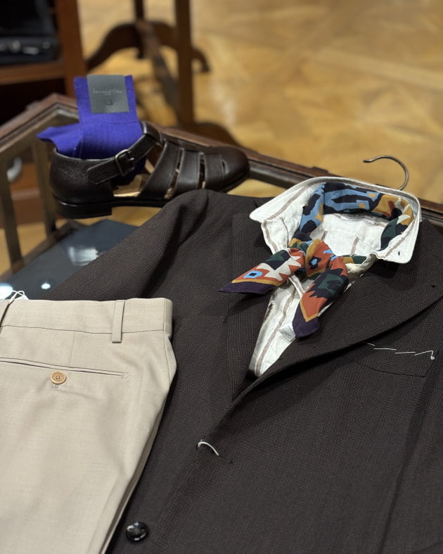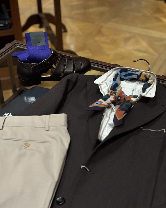 ナポリの伝統的なサルトリアーレとガブリエレ・パジーニ氏の挑戦的な美意識が高次元で融合し、独自の世界観を持つコレクションが展開されています。
