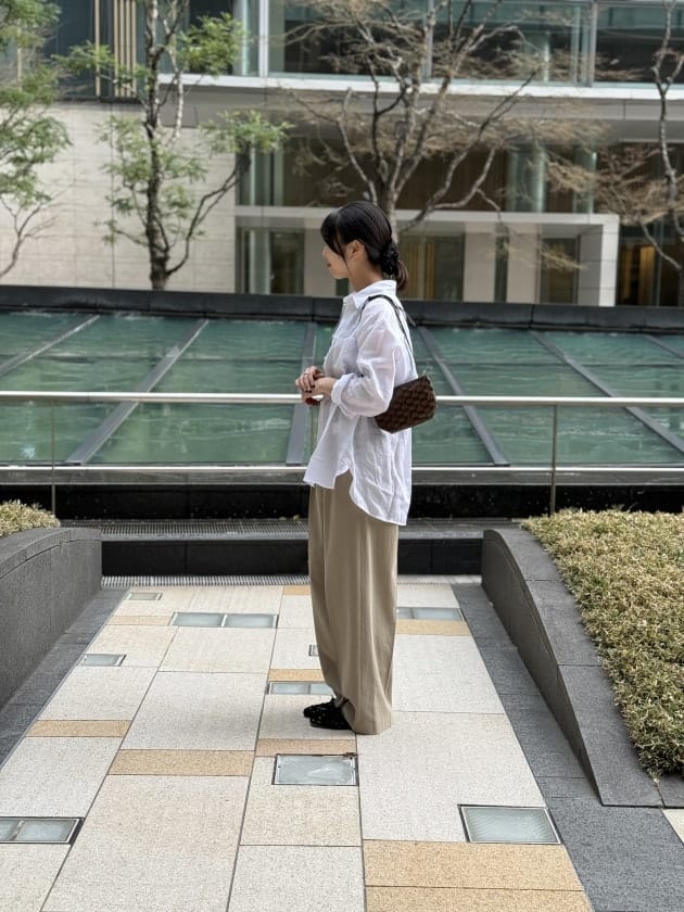 光沢感が美しく、ラフに見えがちなリネンアイテムもエレガントな印象を与えてくれます。
