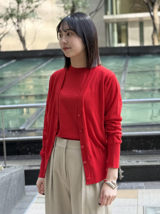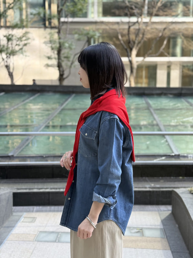 洗練された雰囲気を意識しながらも小物で遊びをきかせ、都内に馴染むスタイリングにしてみました。