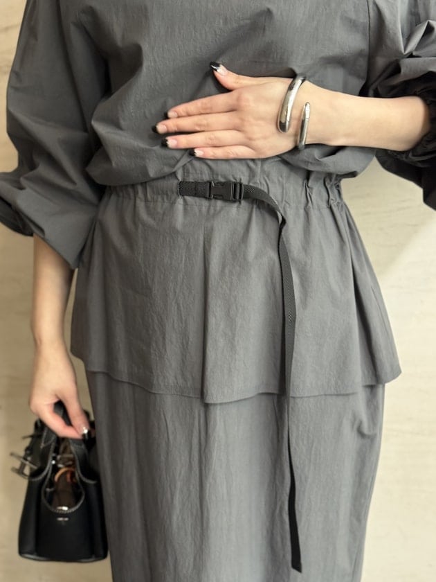 three dots / フレア タック ロングワンピース