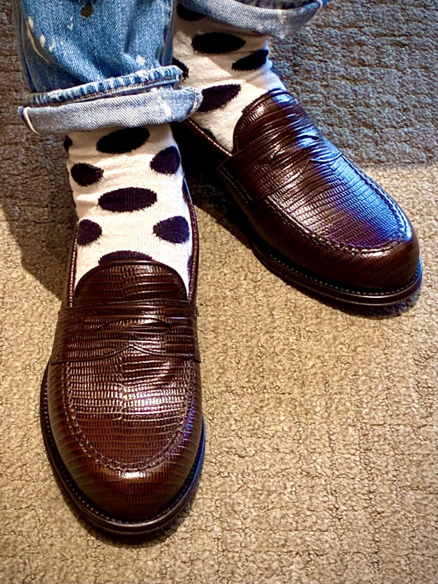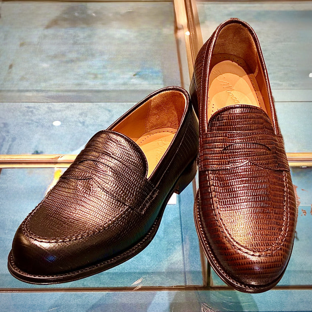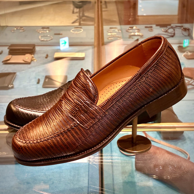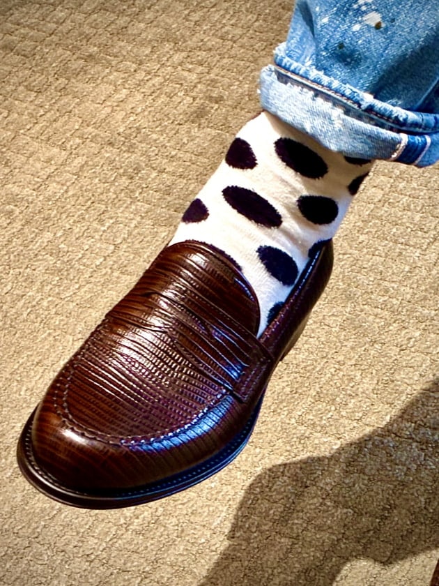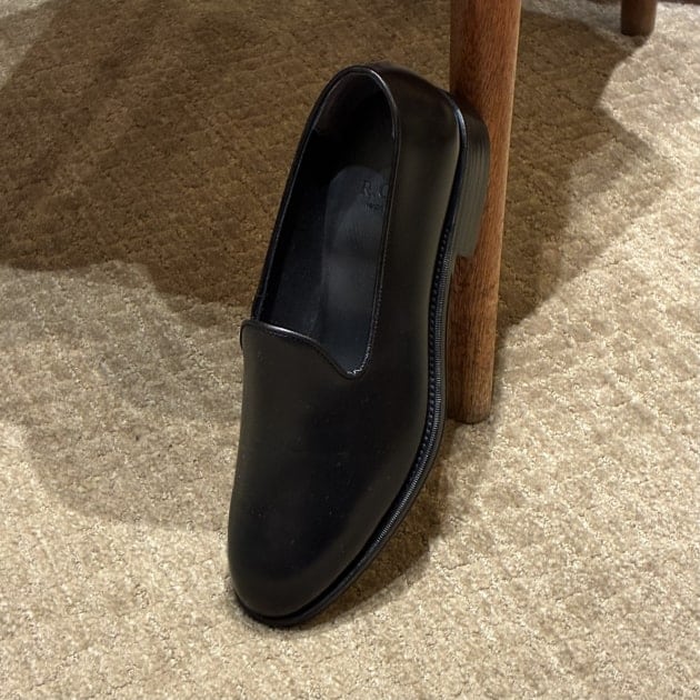足元にはR.C.A.F よりプレーントゥ ローファー。
