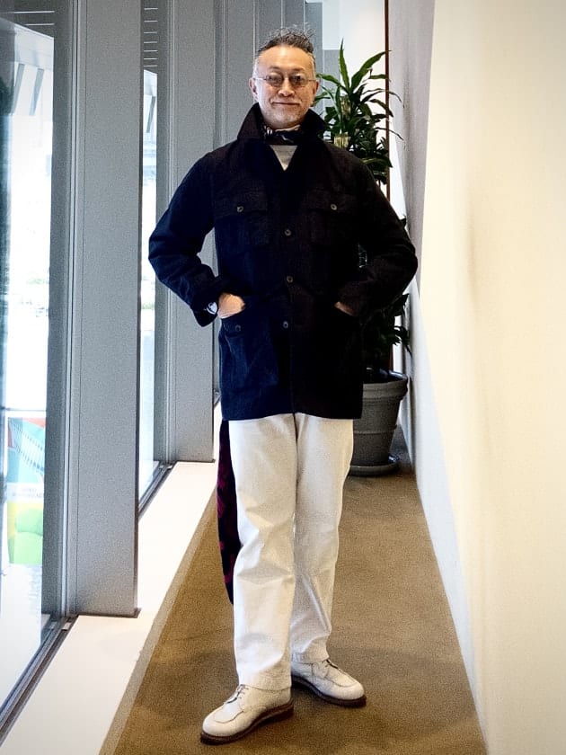 ファッション感の強い装いにはこの普遍的なシューズを敢えて合わせたい。